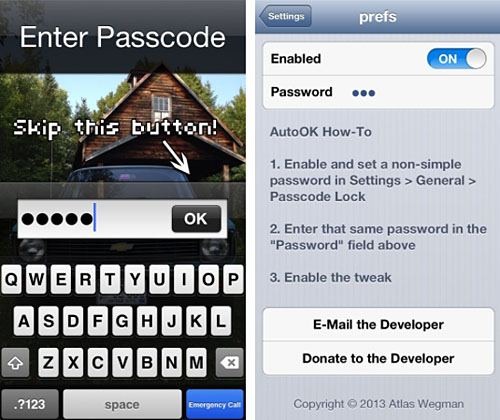 Now jailbroken iPhone users who use a complex passcode can skip the OK button with the free tweak AutoOk installed. Just as it's named, the tweak will automatically register the passcode OK button, making complex passcodes behave like simple passcode entry. As soon as the full password is entered the device will unlock.