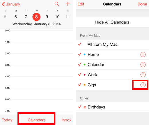 Touch Add Calendar at the bottom of the list of existing calendar categories. Select a color and enter a name for the custom calendar. When complete, tap Done in the upper right corner. The calendar has now been added and will appear as an option when tagging new events in the Calendar app. These calendars will also be synced to the computer and iCloud.