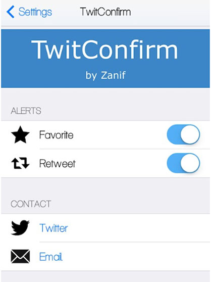 Settings for TwitConfirm include a toggle to disable the tweak completely, as well as separate toggles to ask for confirmation when using the Favorite button or Retweet button. Without TwitConfirm, accidentally retweeted or favorited tweets can go unnoticed for some time. This tweak is a good way to avoid having to undo unwanted Twitter actions later.