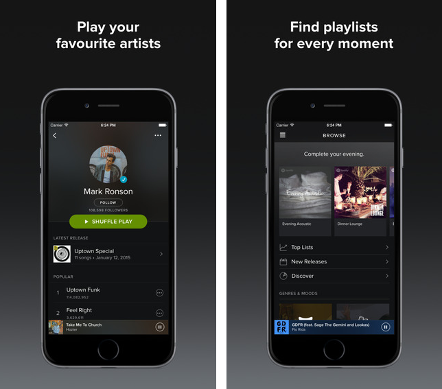 iOS users can download Spotify on iTunes for free. Premium features include ad-free music, offline listening and better sound quality. Users can subscribe to Spotify Premium right through the iOS app, which will charge the linked iTunes account $12.99 per month automatically.