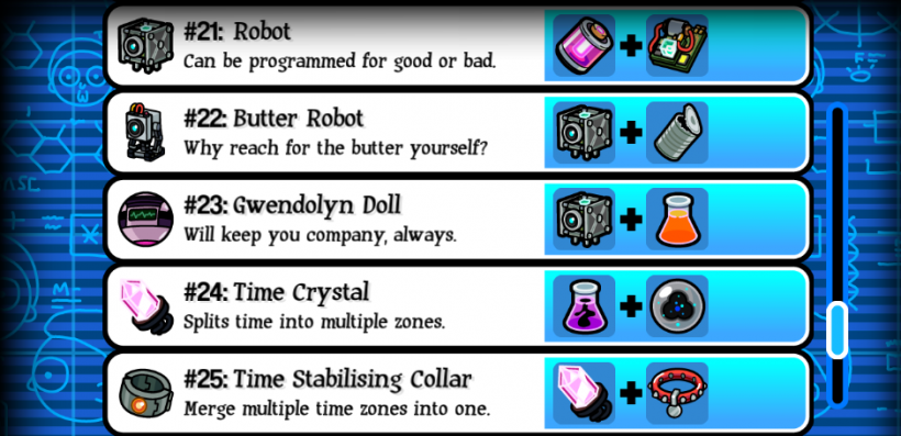You can discover crafting recipes at the crafting stations by randomly placing items in the machine. Once you place two to three items in the machine, it will tell you if they will make a new item or not. New recipes that you discover will be saved in the recipe menu at the crafting station. There are 30 recipes to discover in Pockey Mortys.