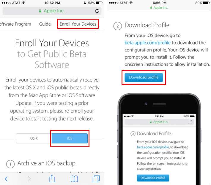 1. First you will have to sign up for Apple's Beta Software Program. Navigate to beta.apple.com using Safari on your iPhone and tap "Sign Up" (or "Sign In" if you are already registered). You will have to log in with your Apple ID and agree with some terms and conditions.