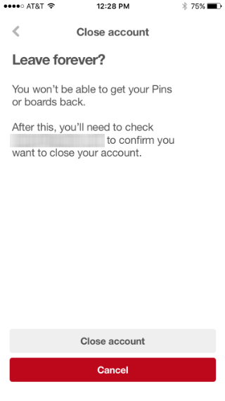 4. Scroll all the way to the bottom. You have a choice to deactivate your account or close it for good. If you deactivate, nobody can see your Pins or profile but you can still receive messages, and you can reactivate later. If you choose to close your account you won't be able to get your Pins or boards back.