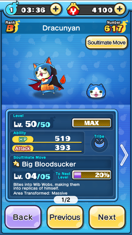 Dracunyan is a powerful vampire, S-Rank Yo-Kai, who can convert other Wib Wobs into himself. He is an important tool for unlocking hidden stages and earning stars in later stages. His Soultimate move is also a great offensive and defensive weapon since it allows you to quickly create bigger Wib Wobs, get more bonus balls and open fever mode faster.