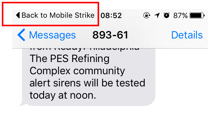 If there was already another app running, a shortcut to return to the previous app will be present at the top of the screen. This is a breadcrumb to help navigate directly to the previous app, without having to exit to the iOS home screen first.