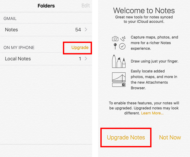 1. Make sure Notes is connected to iCloud. Navigate to Settings -> iCloud -> Notes -> ON (green slider).2. Open the Notes app and make sure it has been upgraded.
