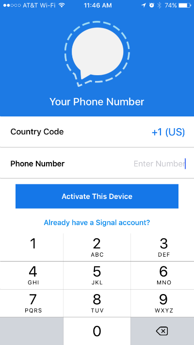 - Download Signal for free from the App Store and open it. Register by entering your phone number.