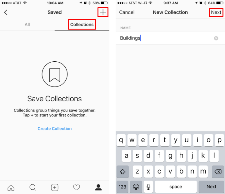 - Tap on "Collections," then tap on the “+” in the top right and enter a name for your new collection. Now you can organize any way you want, by subject, poster, etc. Tap “Next” in the top right when your done.