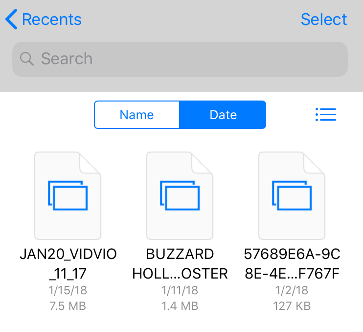Now that you have all your file sources added you can return to Recents > See All. From here swipe down on your display to see the sorting options, Name and Date.