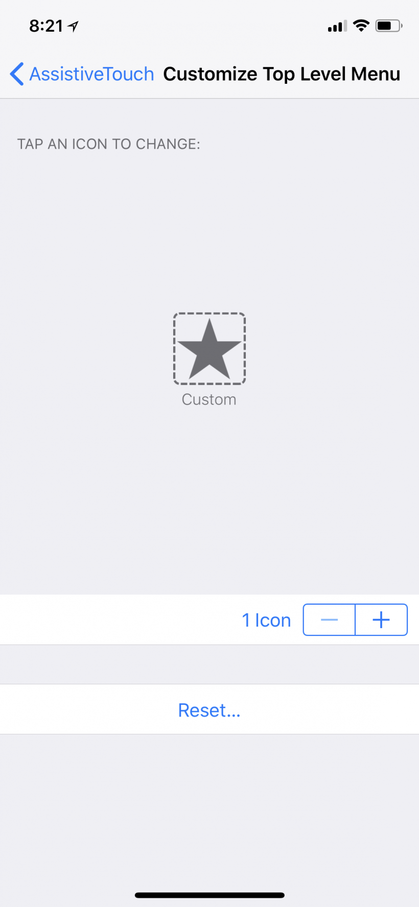 - Now you will see 6 icons. Tap the "-" button until you have just one icon, the "Custom" icon.
