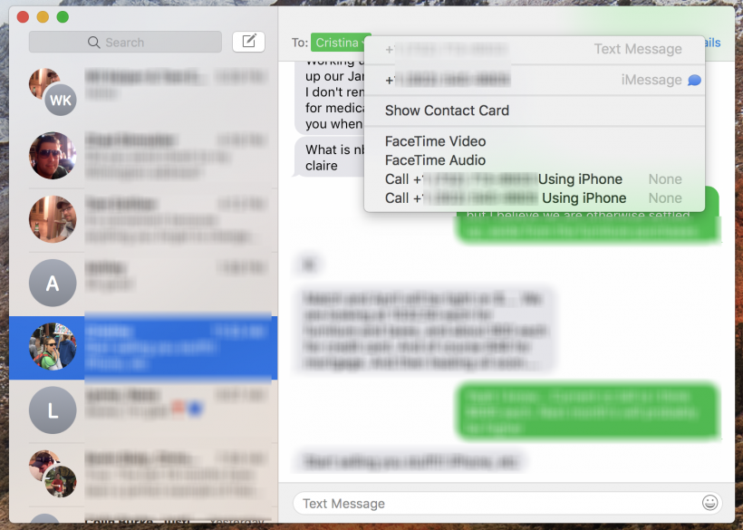 Some of my contacts have two or more phone numbers, how do I get the Messages app on my Mac to send to a different one?