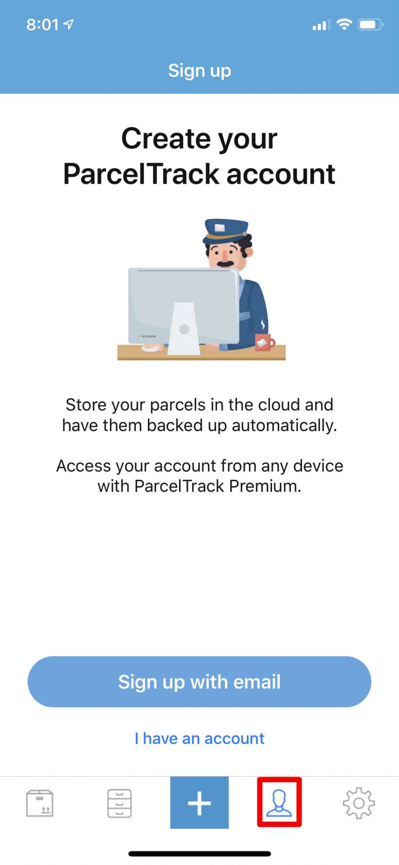 - Open the ParcelTrack app and tap the "+" button in the bottom center to add a tracking number.