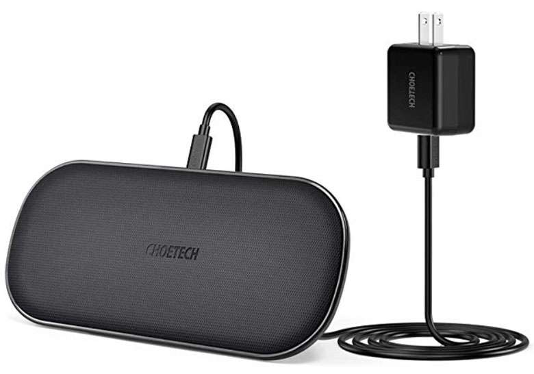 - CHOETECH Dual Wireless Charger - Unlike most Qi charging pads, CHOETECH provides more flexibility on where the iPhone can be placed thanks to five overlapping coils inside. Two devices, such as AirPods and an iPhone can be placed anywhere on the anti-slip pad for fast charging. The Dual Wireless Charger comes with its own Quick Charge adapter and USB C charging cable.