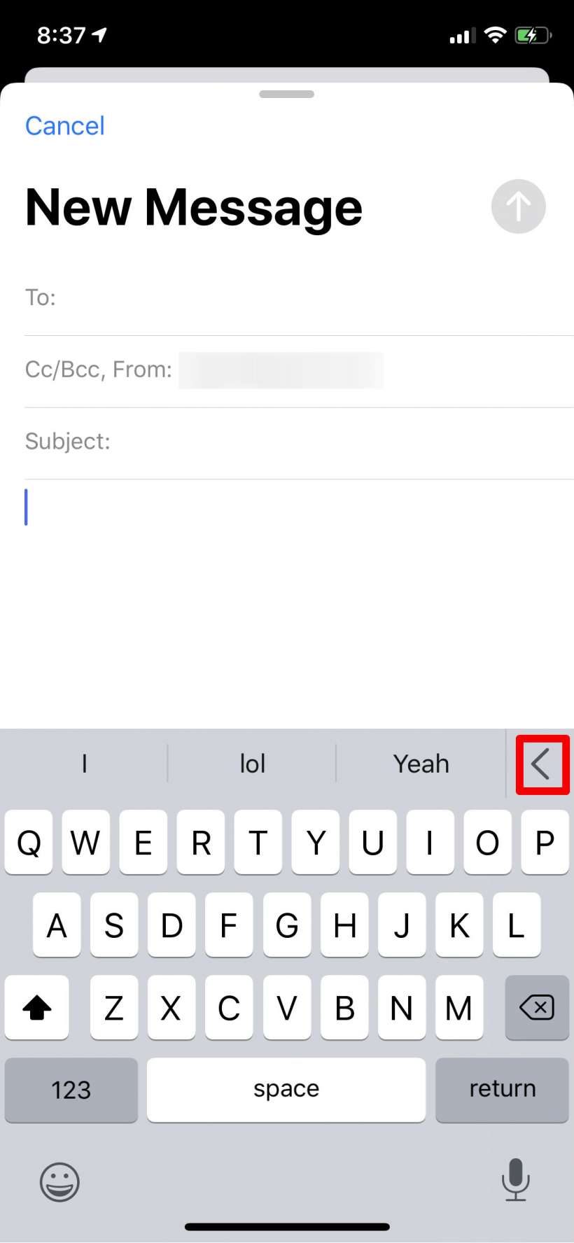To use the format tools, start a new email from your iPhone or iPad's Mail app and tap the "<" button.
