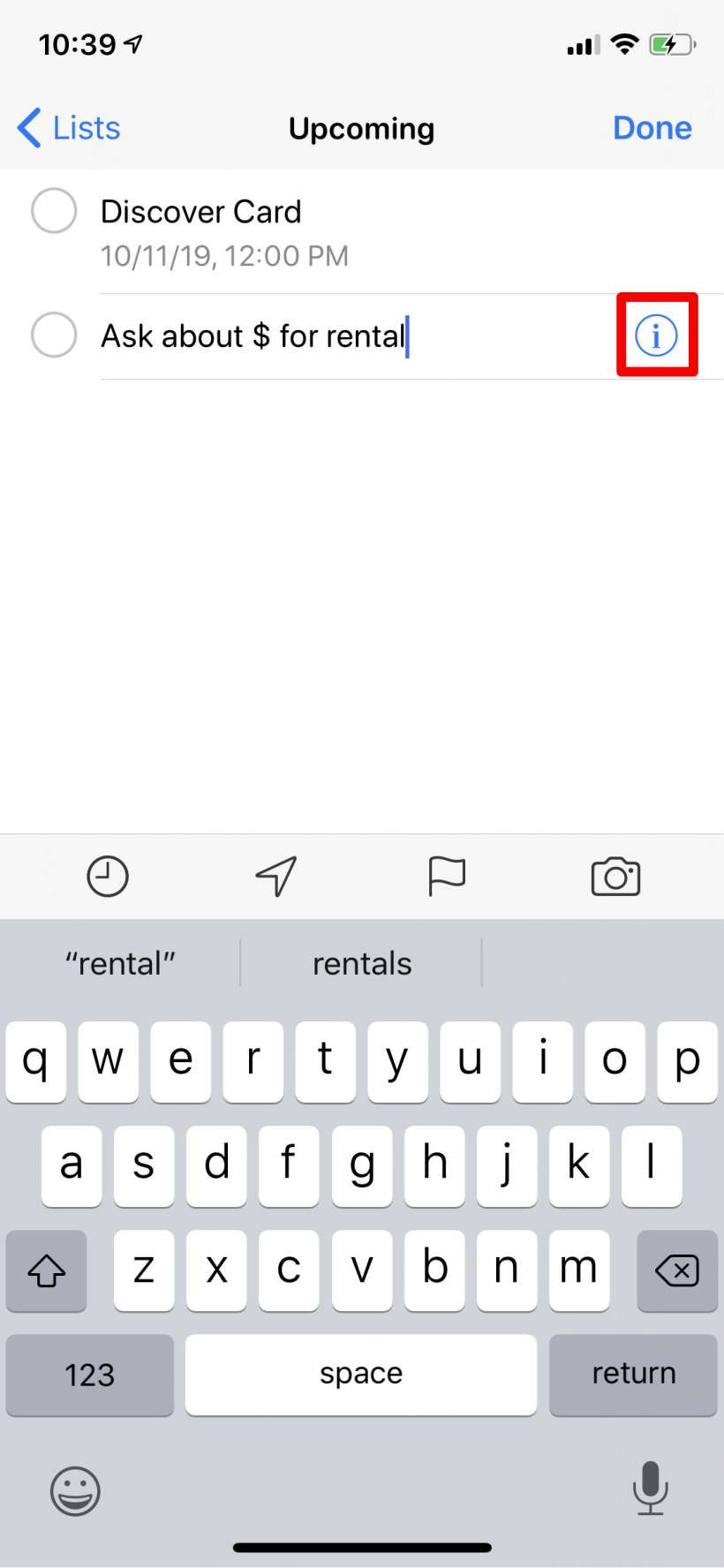 - Open Reminders and create a new reminder by tapping on the appropriate list/category and tapping New Reminder.