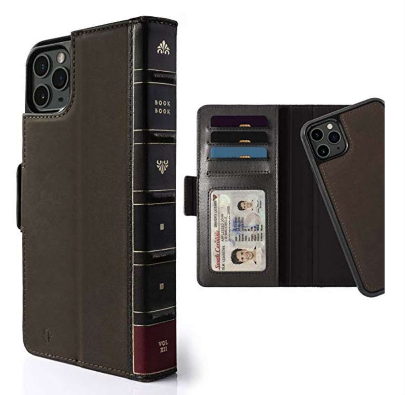 The BookBook is almost a full-blown wallet. Its unique design features premium leather and a side that looks like a book binding. It has four slots for credit cards, one with a clear window that can hold your driver's license, plus a larger slot for cash, receipts, etc. The cover stays shut with a magnetic connector and can also be used as a hands-free stand. What's more, the inner case that holds the iPhone can detach, making it easy to pop into a car mount and convenient for any time you don't need the whole wallet.