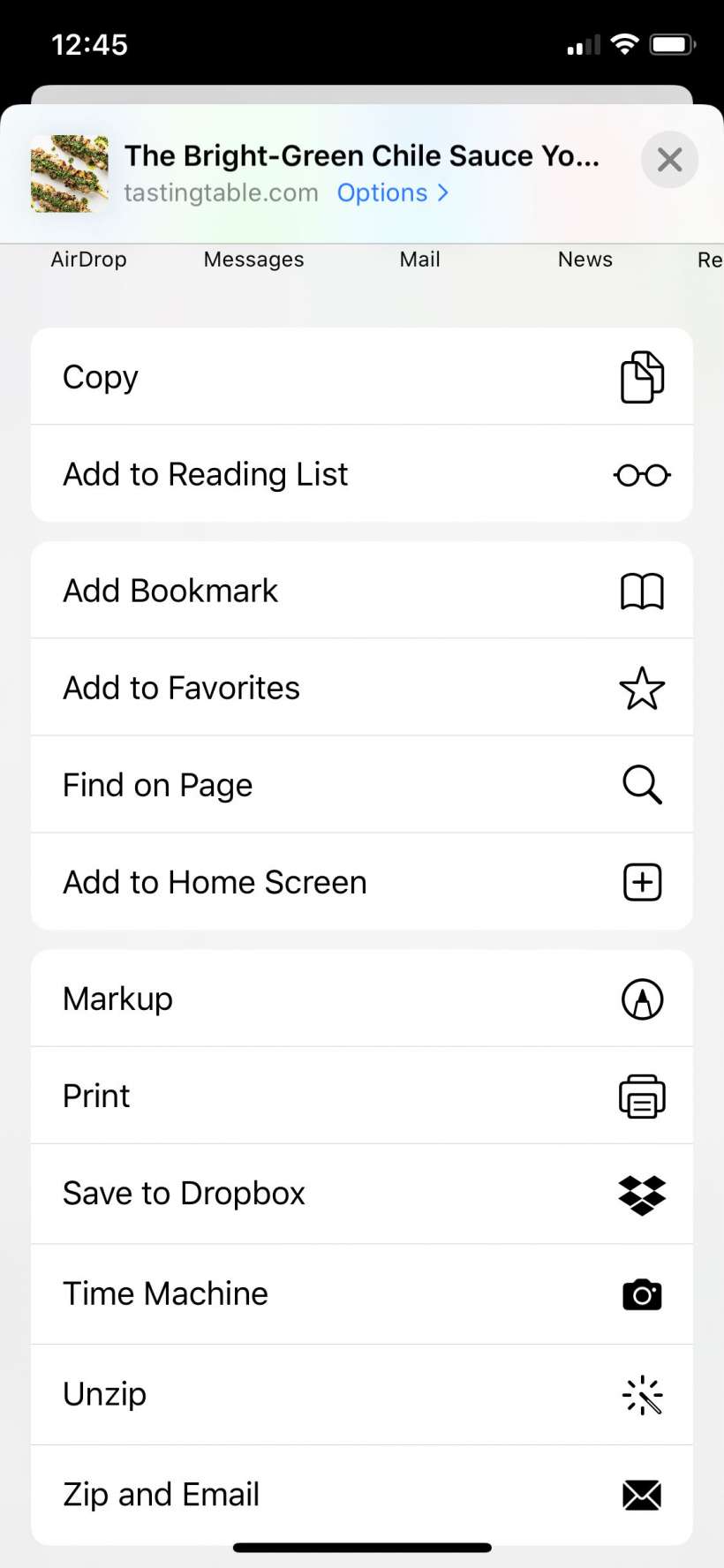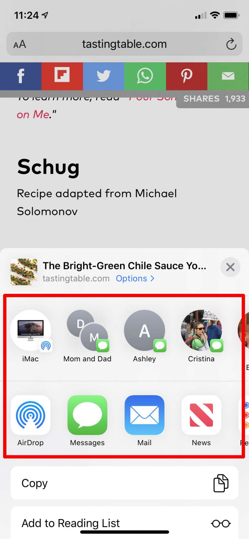 - Now your share options will reflect the changes you made. Note that you have only customized the Share menu for Safari, not any other app. If you go to Photos you will see a different menu, so you will have to edit that as well if you want.