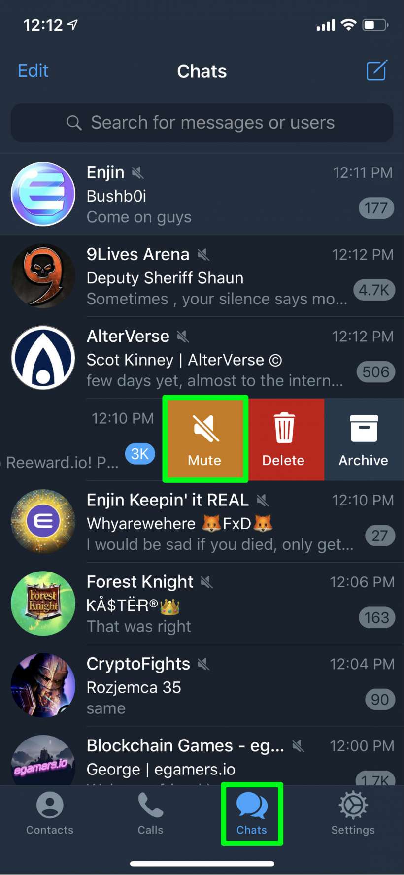 If you have joined a Telegram channel with 20K users you are going to want to mute it. In fact, you probably want to mute it if it has 20 users. To do so, simply swipe left on the channel you want to mute under the Chats tab, then tap on the Mute button.
