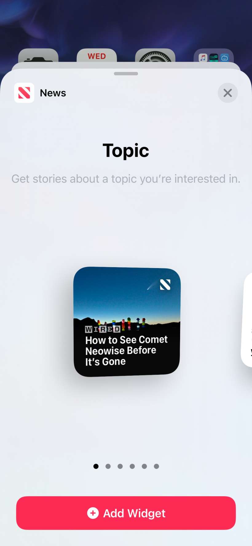 - Now you will have a stack of widgets that you can scroll through vertically. You will see some dots alongside it indicating that there are more widgets available to scroll through.