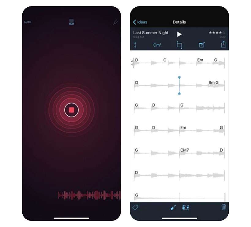 Besides being a recording tool, Music Memos provided music analysis including detection of musical measures and suggested chord names. The tempo of recordings could be adjusted, and comments such as lyrics entered into the app. Once recordings were trimmed, they could be shared right from Music Memos or opened in GarageBand or Logic Pro X to add more instruments.