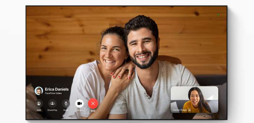 Apple TV supports the Center Stage feature, which keeps everyone on the call perfectly framed on the screen during a FaceTime call. Split View can also be used in conjunction with SharePlay to watch shows and movies with others on a live FaceTime call. FaceTime support on Apple TV brings video conferencing to the big screen.